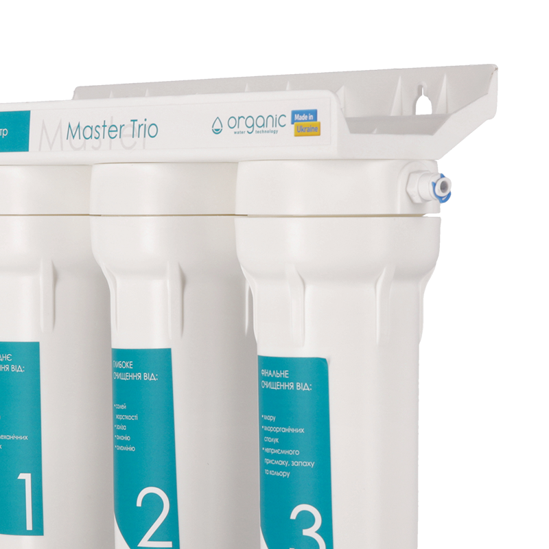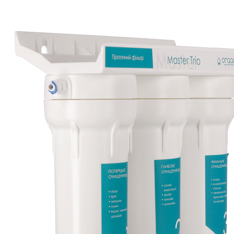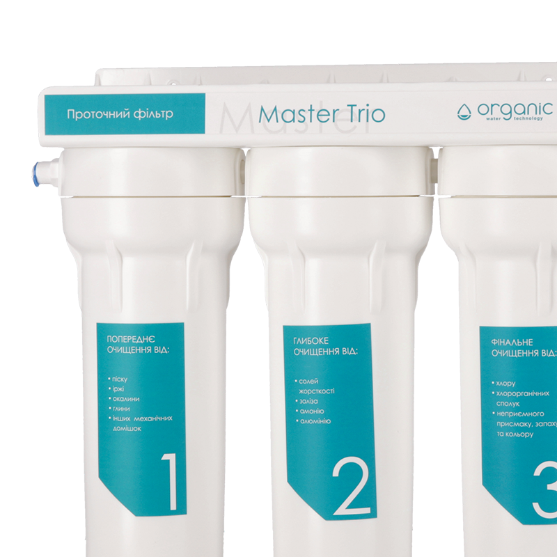 Змінні картриджі забезпечують 3 ступені очищення води від основних домішок.