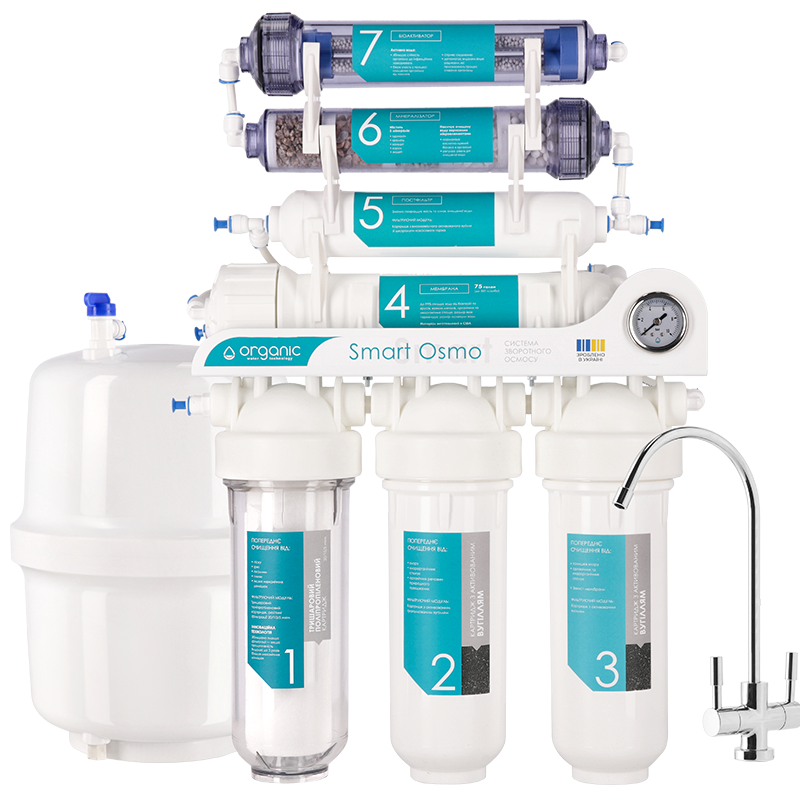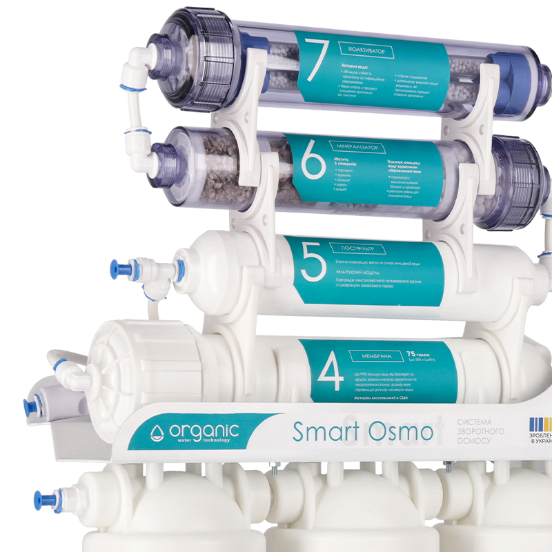 Система Organic Smart Osmo 7 призначена для очищення води від усіх домішок, у тому числі вірусів та бактерій — таку воду можна пити без кип'ятіння та використовувати для дитячого харчування. Після очищення вода насичується мінералами та проходить через картридж-біоактиватор