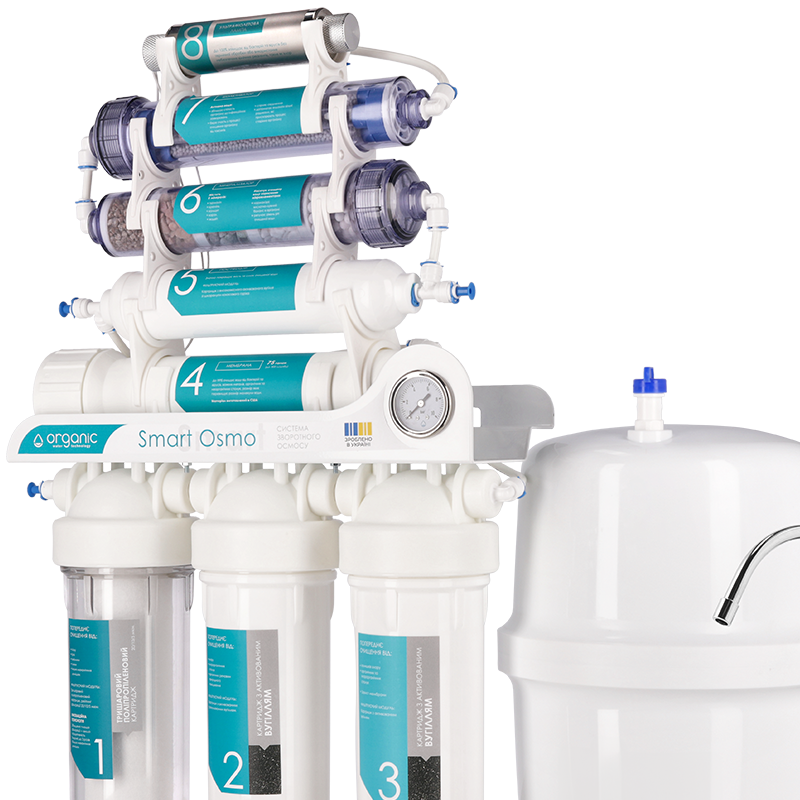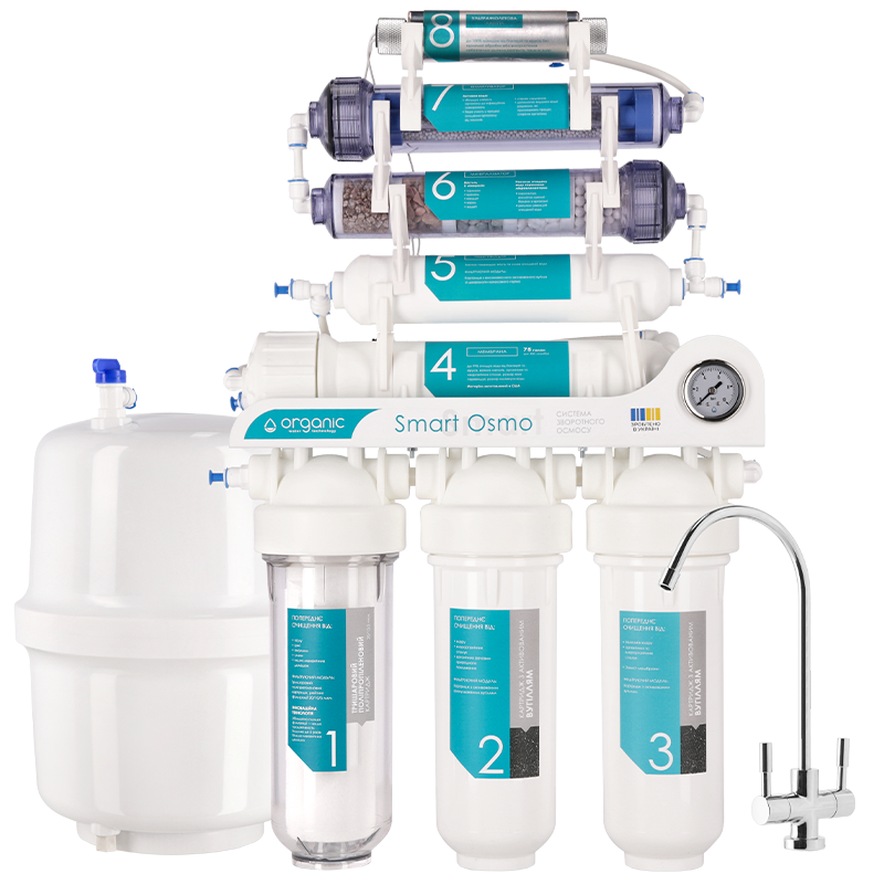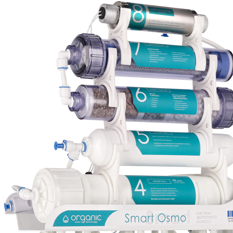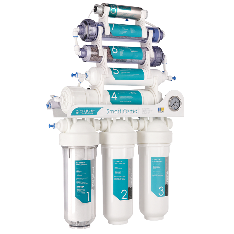 Система Organic Smart Osmo 8 призначена для очищення води від усіх домішок, у тому числі вірусів та бактерій — таку воду можна пити без кип'ятіння та використовувати для дитячого харчування. Після очищення вода насичується мінералами, проходить через картридж-біоактиватор та обробляється ультрафіолетом.